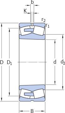 Range of section height at outer ring of assembled bearing