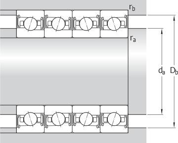 Rigidez axial para la precarga C (conjuntos de dos rodamientos espalda con espalda o cara a cara)