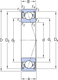 Rigidez axial para la precarga A (conjuntos de dos rodamientos espalda con espalda o cara a cara)