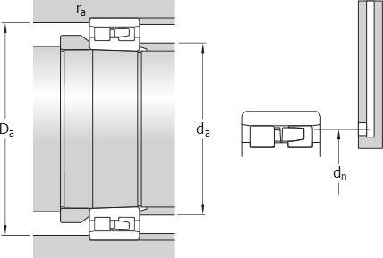 Diámetro del resalte del aro interior (cara lateral grande)