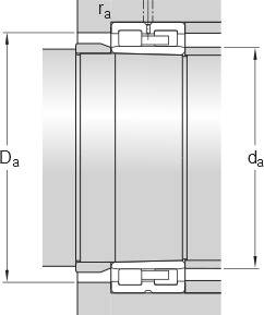Diámetro del resalte del aro interior (cara lateral grande)
